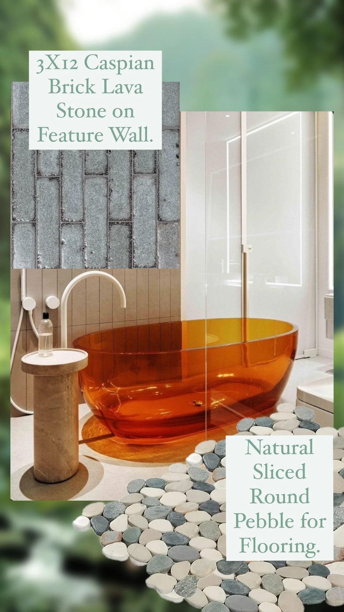 Glazzio Great Plains Altitude 3X10 Glossy Porcelain Tile for Pony Wall and Shower Walls. Shower Floor: Florida Tile Cotton Flat Quartz Pebbles.