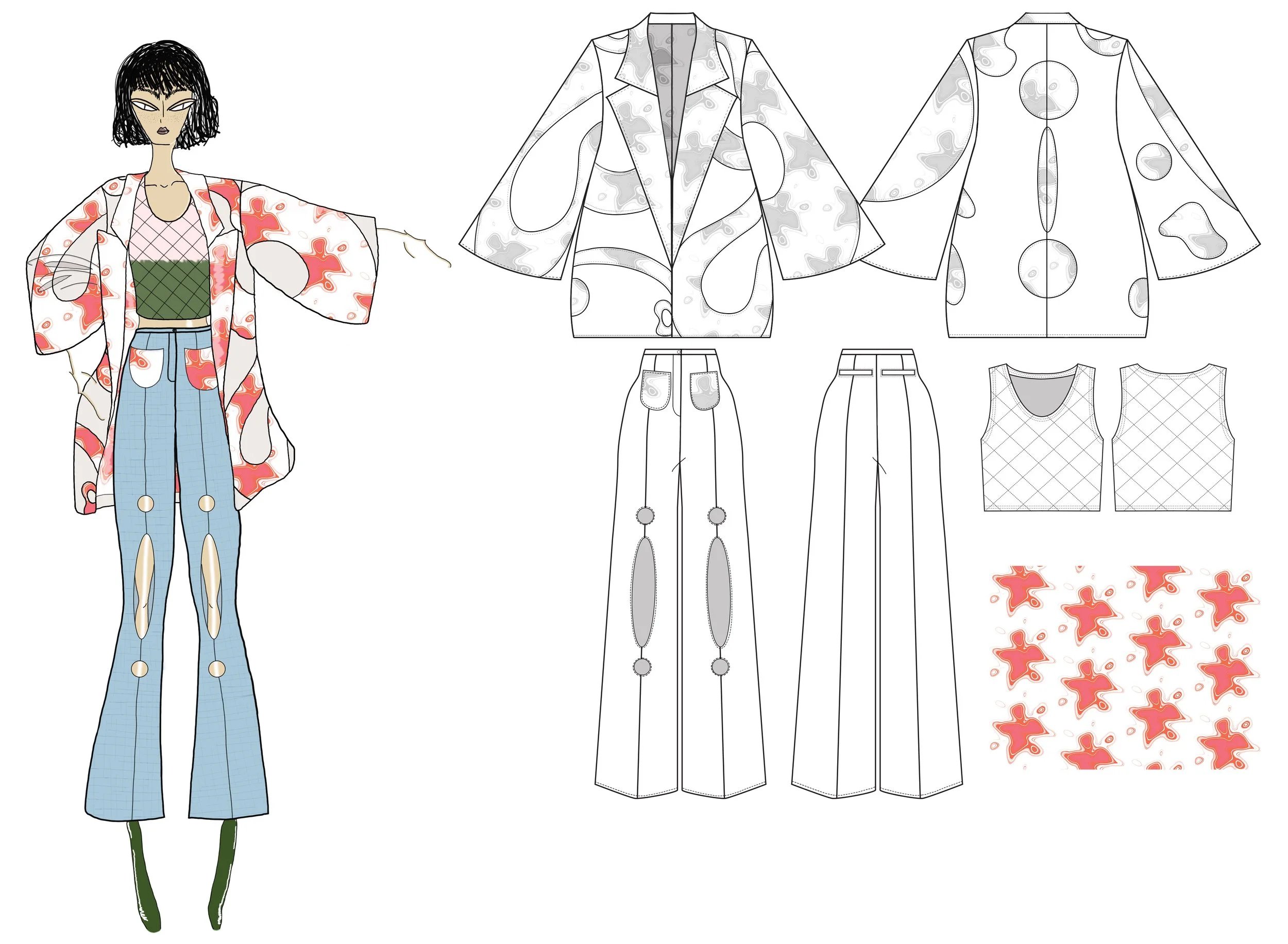 Created this print design and 3-piece look that displays who I am. (designed for a competition)